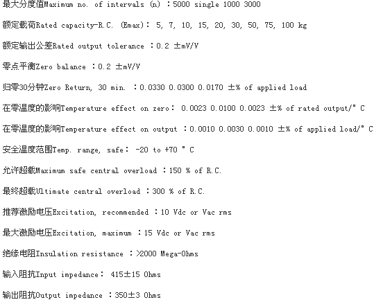 美國特迪亞-亨特利Tedea-Huntleigh 1040-15kg稱重傳感器參數(shù)資料: