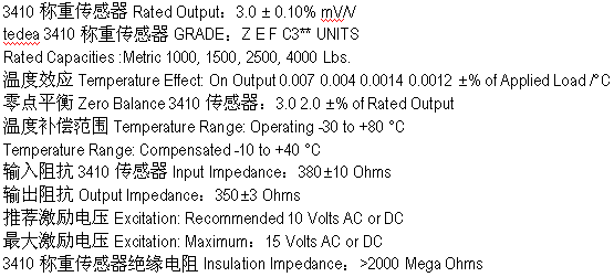 美國(guó)威世特迪亞vishay tedea 3410-1000KG稱重傳感器參數(shù):