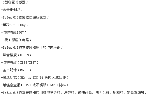美國威世特迪亞vishay tedea 615-200kg稱重傳感器參數(shù):