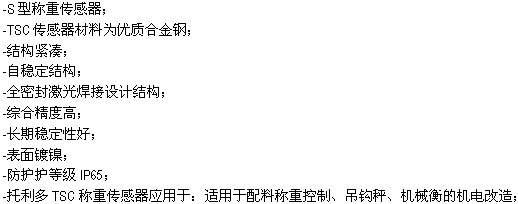 TSC-500kg稱重傳感器材料為優(yōu)質(zhì)合金鋼,長期穩(wěn)定性好,應用于配料稱重控制、吊鉤秤、機械衡的機電改造等。(TSC-500kg weighing sensor material is high quality alloy steel, good long-term stability and application in the weighing control, hook scales, mechanical and electrical transformation of mechanical equilibrium, etc.)