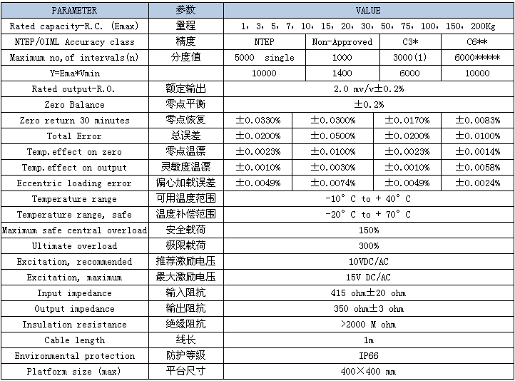 特迪亞1042稱重傳感器產(chǎn)品參數(shù)表:
