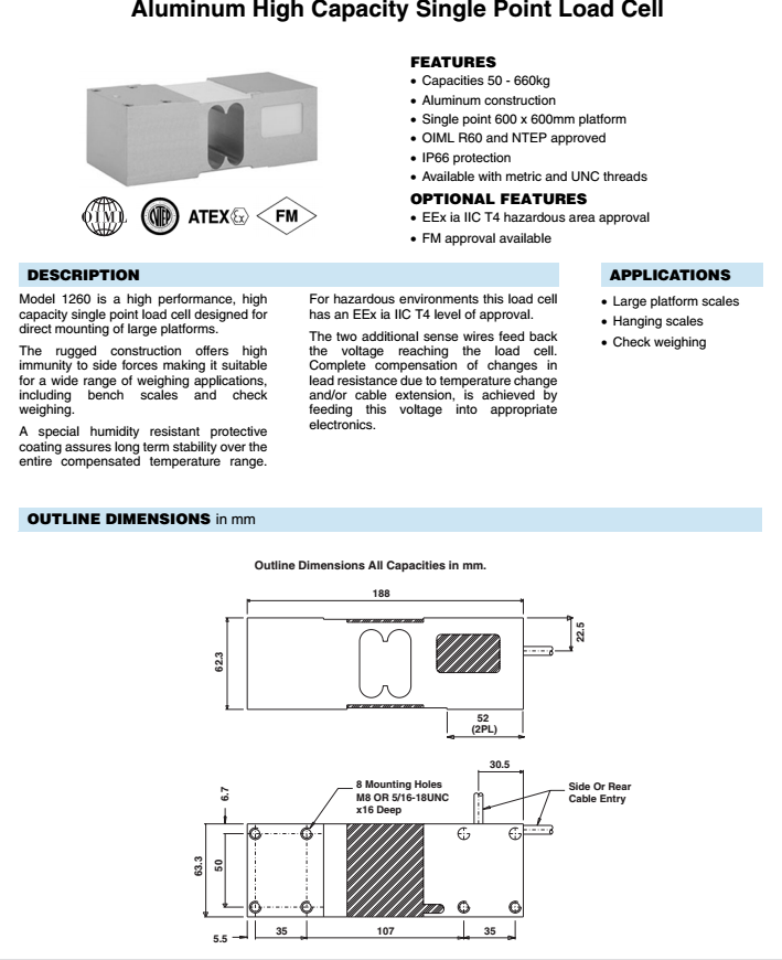 #美國(guó)tedea 1260稱重傳感器應(yīng)用于用于臺(tái)秤,定量包裝秤,配科秤等領(lǐng)域。