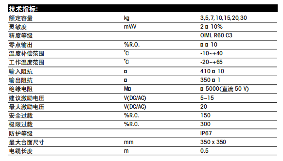 METTLER TOLEDO傳感器相關量程:
