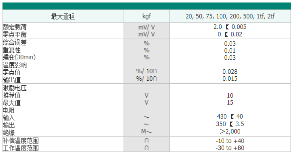 韓國(guó)CAS SB-2T稱重傳感器技術(shù)參數(shù):