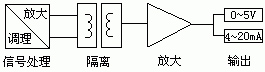 直流信號(hào)分為直流電壓和直流電流,直流電流一般是通過(guò)電阻取樣,直流電壓一般用電阻降壓處理。由一個(gè)隔離電源向前置放大器供電。