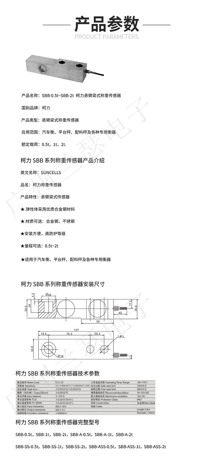 美國SUNCELLS SBB-3T稱重傳感器中文參數(shù):