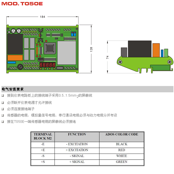 意大利ADOS T050E重量變送器產(chǎn)品參數(shù):