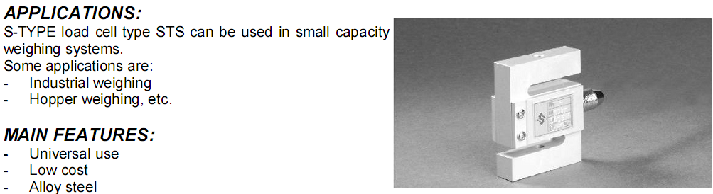 S-Type load cell type STS can be used in small capacity weighing systems.