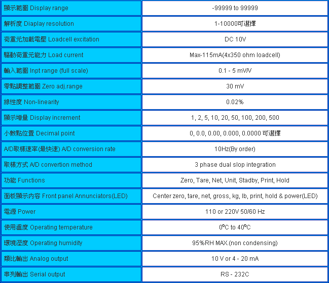 臺灣JIHSENSE JS-2200稱重顯示控制器規(guī)格: