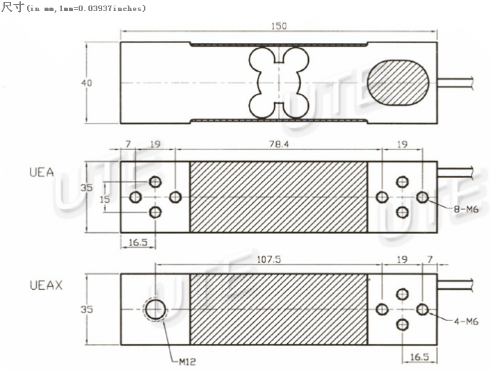 臺(tái)灣UTE UEA、UEAX稱重傳感器規(guī)格尺寸: