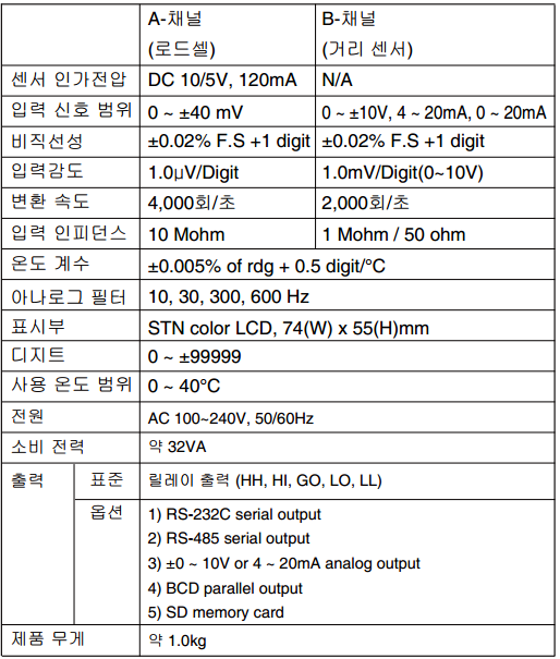 韓國Bongshin BS-G1000稱重儀表技術(shù)指標(biāo)