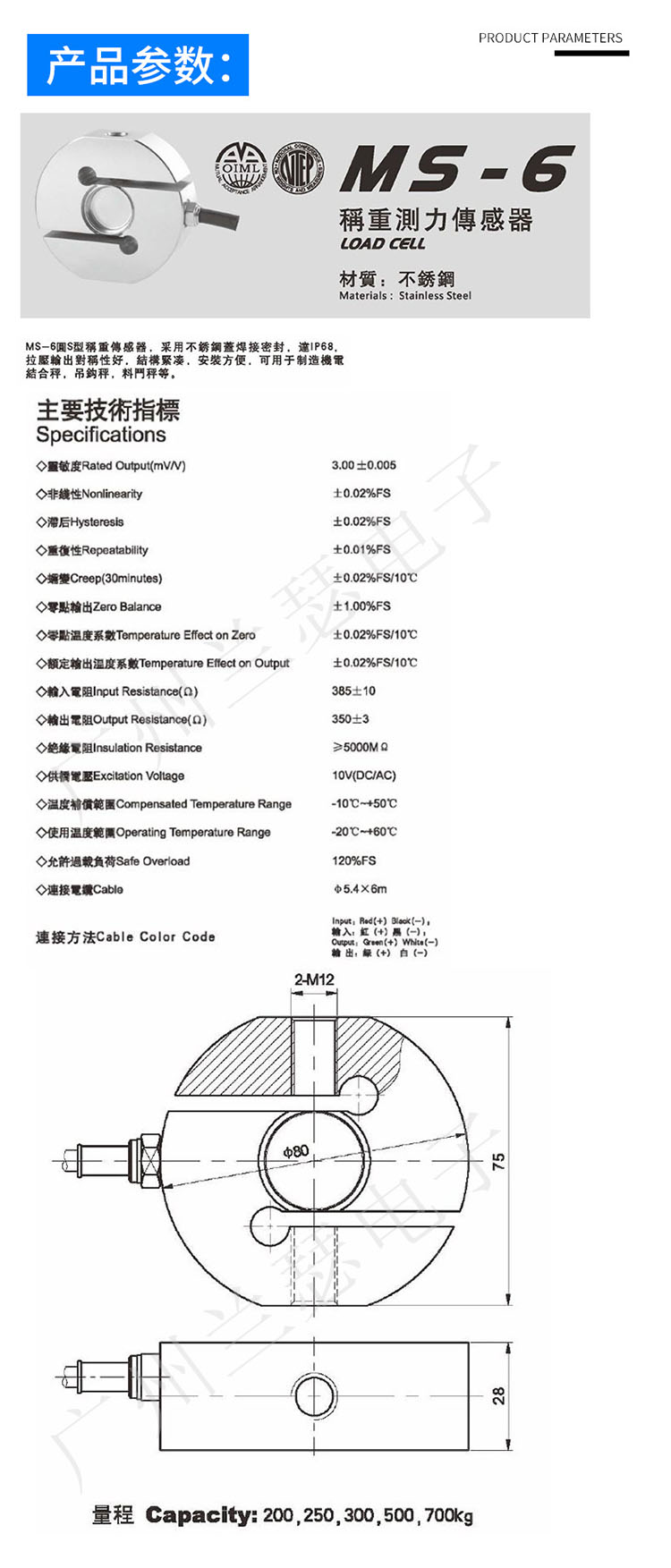 美國AC S型MS-6稱重傳感器產(chǎn)品參數(shù):