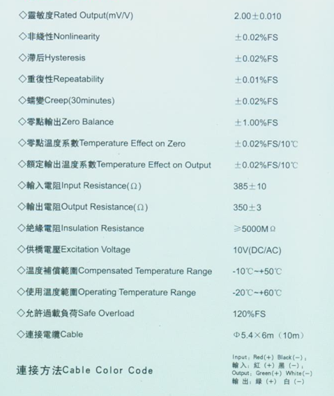美國(guó)AC GX-2-500kg稱重傳感器技術(shù)參數(shù):