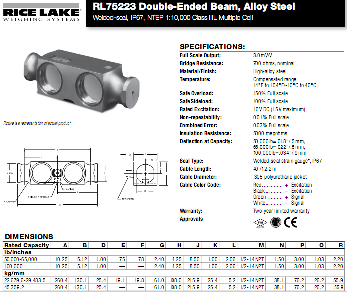 產(chǎn)品名稱:美國(guó)RICELAKE RL75223稱重傳感器