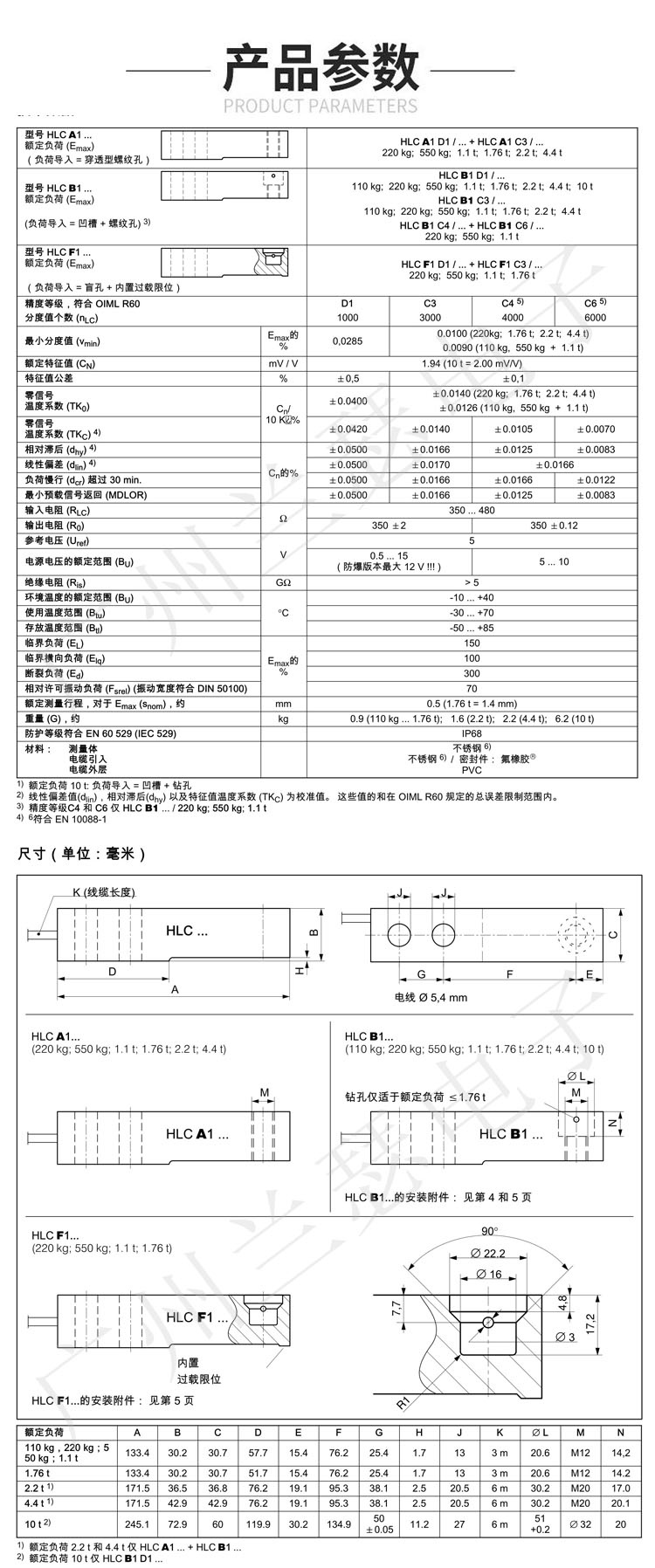 貿(mào)易秤用稱重傳感器,量程 220 kg 到 4.4 t.The HLC load cell is a legal for trade load cell with maximum capacities from 200 kg up to 4.4 t.