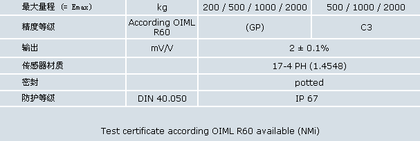 FLINTEC富林泰克BK2稱重傳感器技術(shù)參數(shù)
