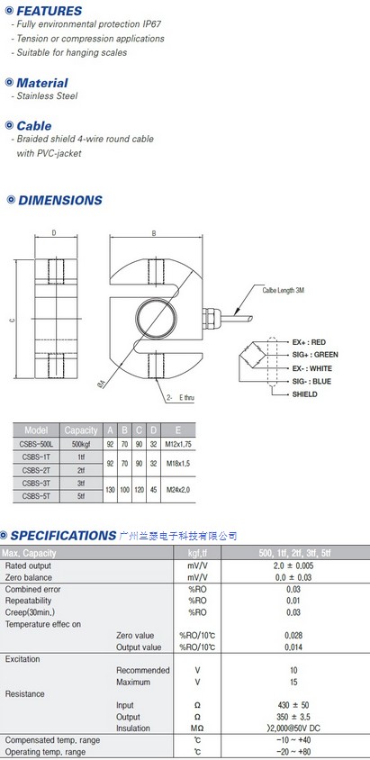 韓國CURIOSITY CSBS拉壓力稱重傳感器采用合金鋼,不銹鋼材質(zhì)膠密封防護處理,安裝容易,使用方便,適用于吊秤,配料秤,機改秤等電子測力稱重系統(tǒng).額定載荷50kgf,100kgf,150kgf,200kgf,300kgf,500kgf,1tf,2tf,3tf,5tf,10tf。