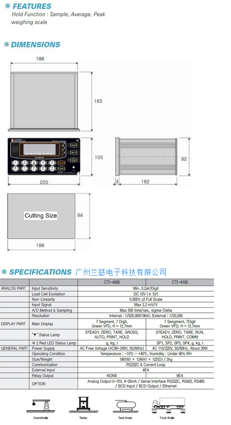 韓國CURIOSITY CTI-4000稱重顯示控制儀表產(chǎn)品參數(shù)尺寸