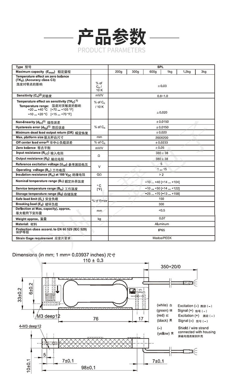 德國HBM SPL稱重傳感器參數(shù):
