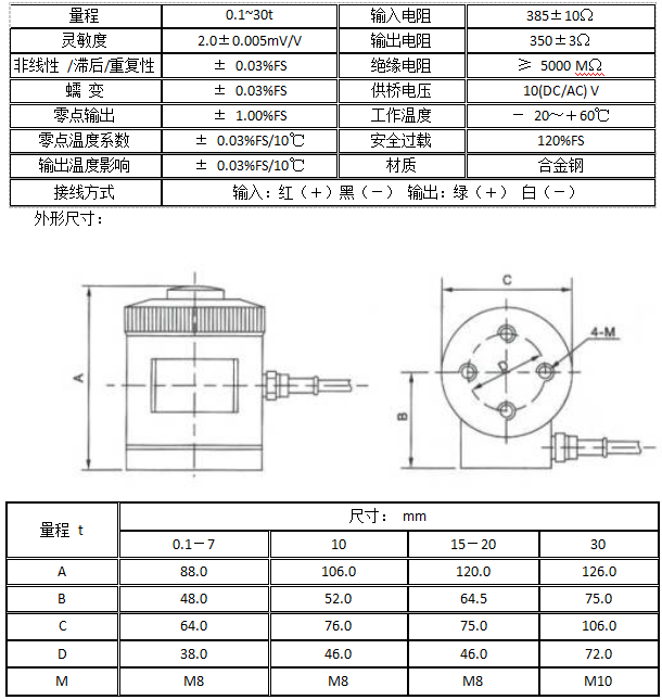 美國AC ET-3稱重傳感器技術(shù)指標(biāo):