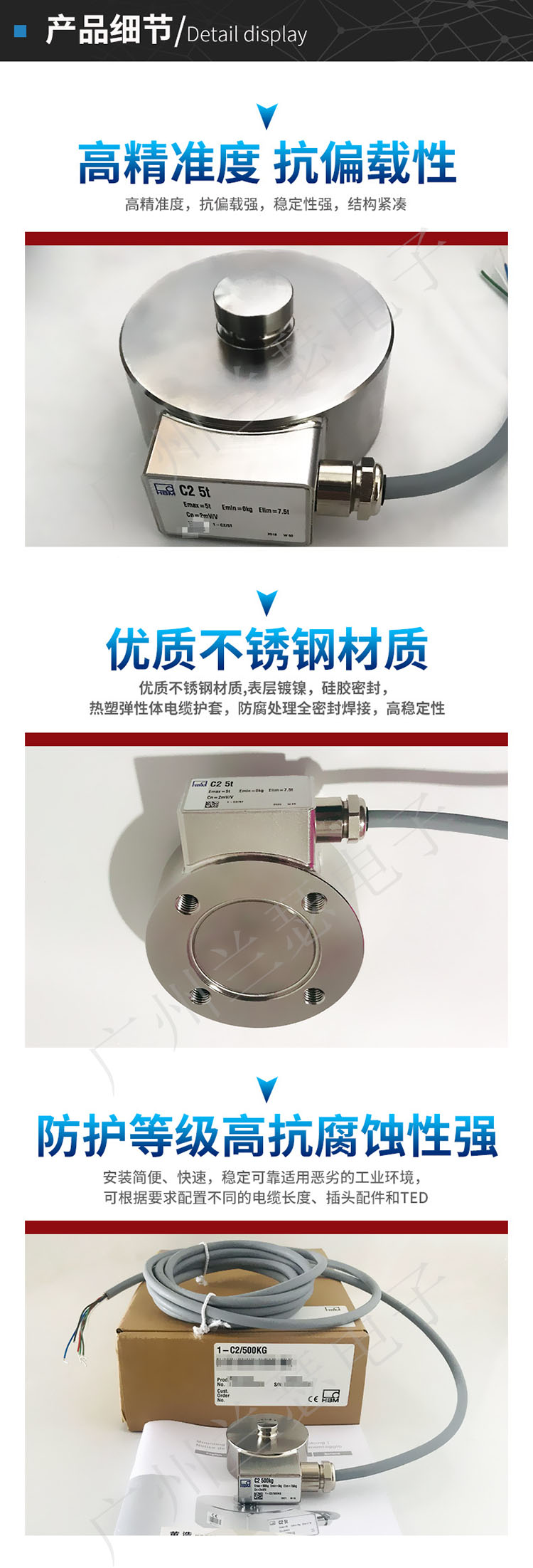 不銹鋼 C2 防銹蝕傳感器,額定量程為 50 kg 到 50 t,德國(guó)HBM C2/10T稱(chēng)重傳感器精度為 0.1 % 和 0.2 %. 結(jié)實(shí)耐用,高穩(wěn)定性,尺寸小.