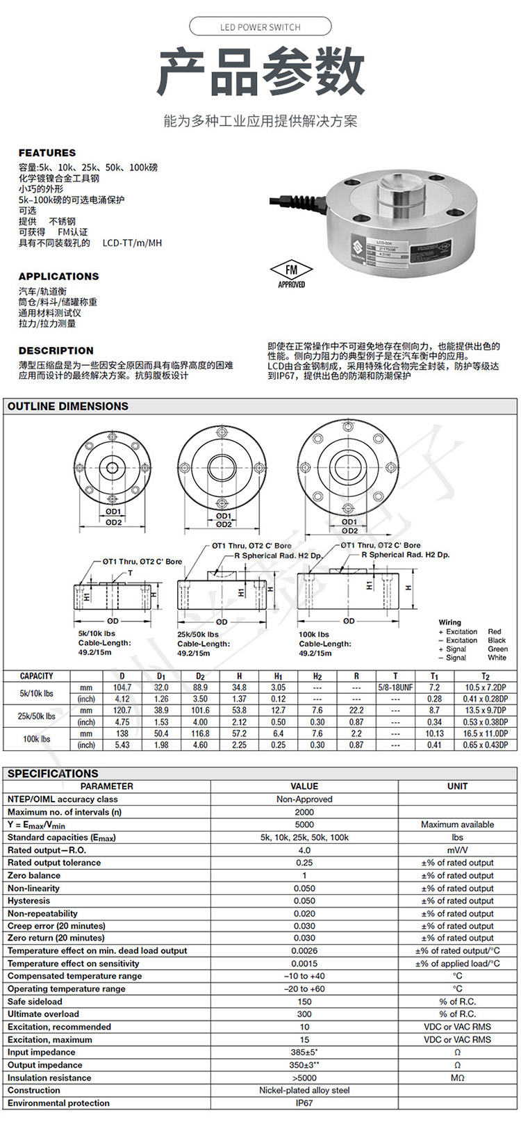 美國(guó)Celtron LCD-22.7tTT稱重傳感器產(chǎn)品參數(shù):
