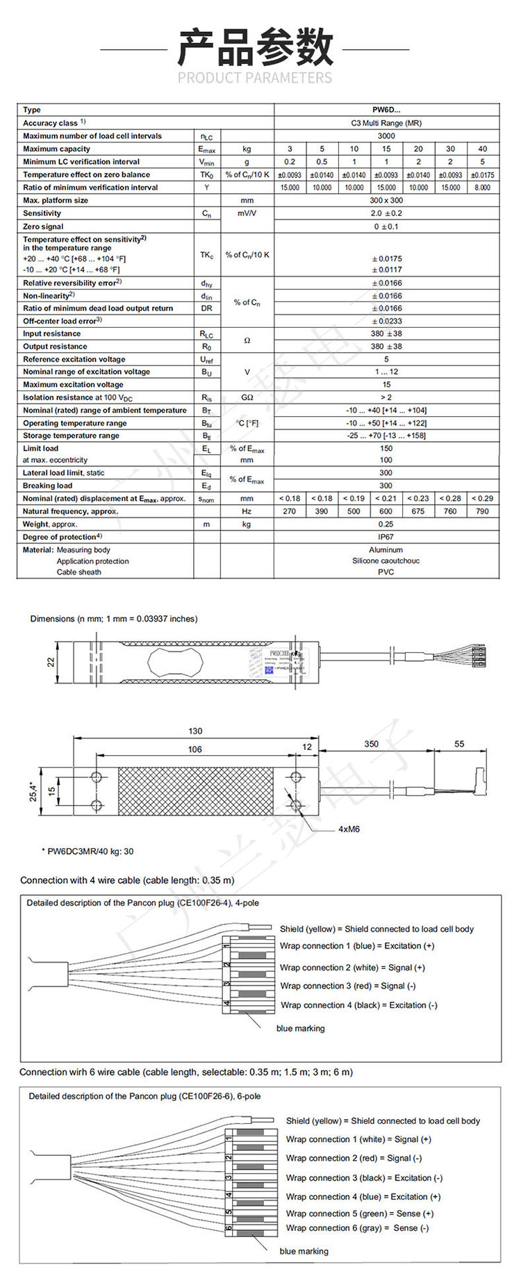 PW6DC3/10KG稱重傳感器最大秤臺面積 300x300 mm . 標(biāo)準(zhǔn)型號采用350 mm 屏蔽4線電纜,另外, HBM 還提供其它擴(kuò)展選擇, 更長的電纜(最大 6 m), 可調(diào)整的輸出或多量程的最小檢定分度值.