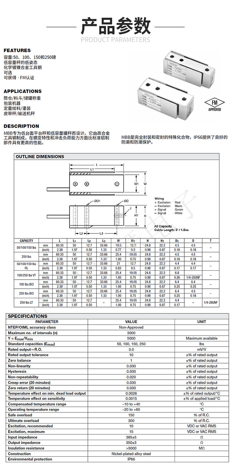 美國Celtron MBB-68kg稱重傳感器產(chǎn)品參數(shù):