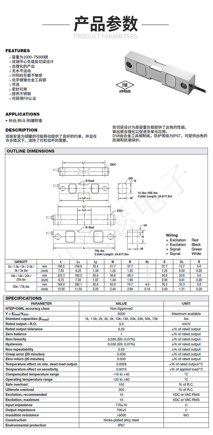美國Celtron DSR-50KLB(DSR-22.7T)稱重傳感器產(chǎn)品參數(shù):
