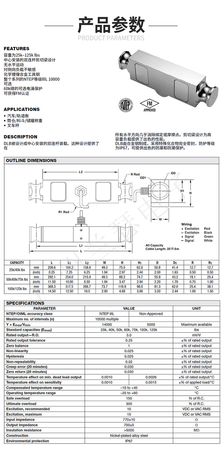 美國(guó)Celtron DLB稱重傳感器產(chǎn)品參數(shù):