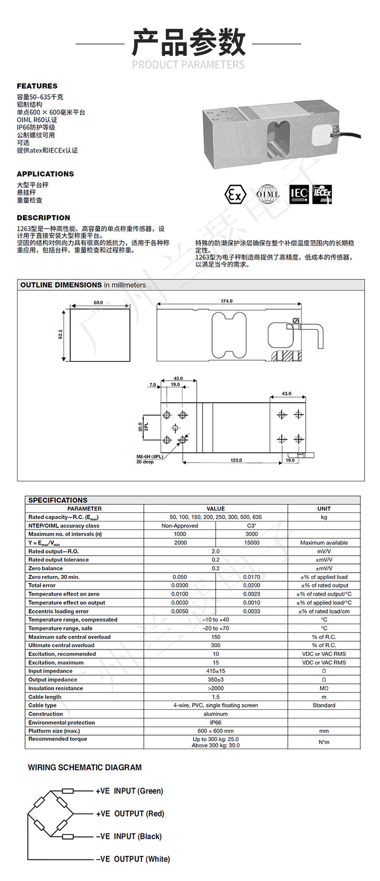 美國(guó)Tedea 1263-250kg稱(chēng)重傳感器產(chǎn)品參數(shù):