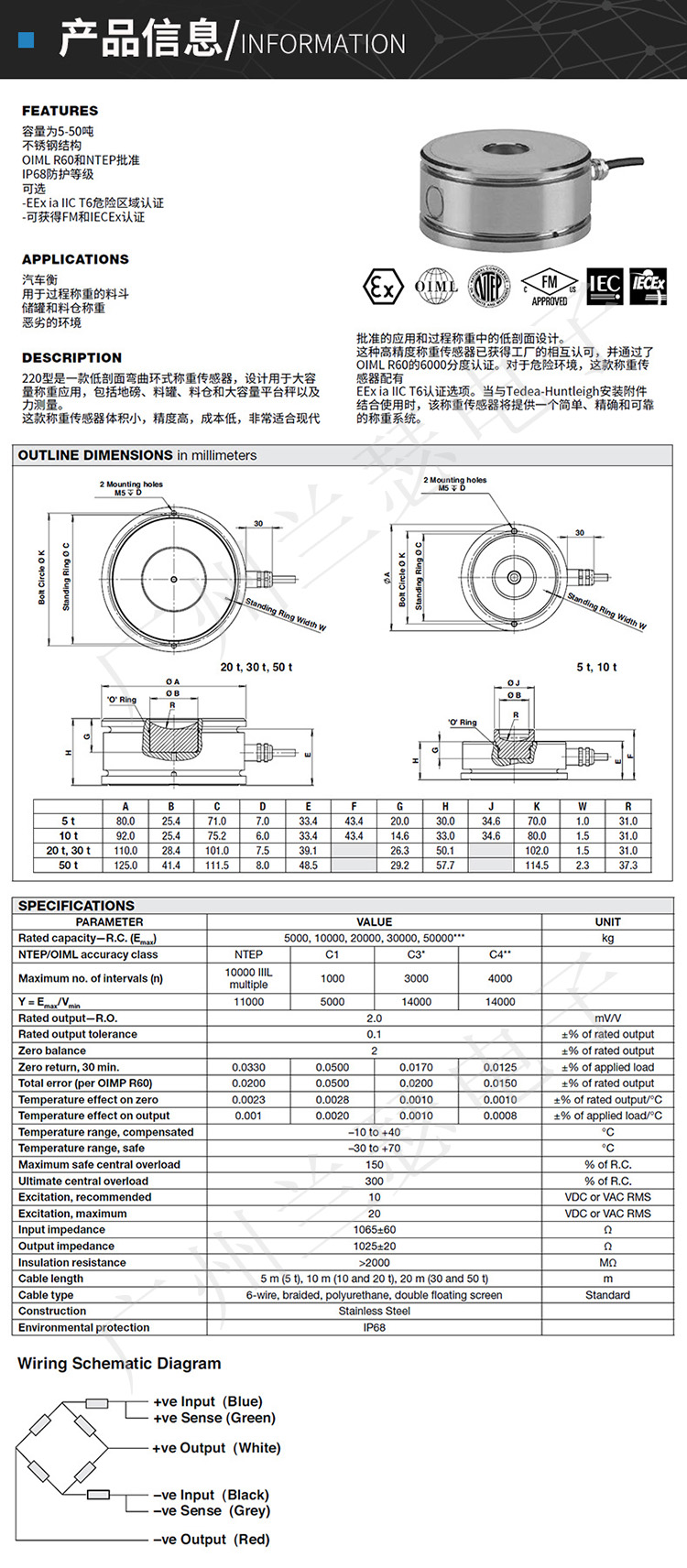美國Tedea 220-30T稱重傳感器產(chǎn)品參數(shù):
