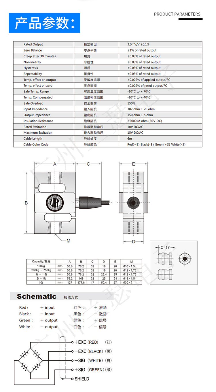 美國(guó)Transcell BSS-500KG稱重傳感器產(chǎn)品參數(shù):
