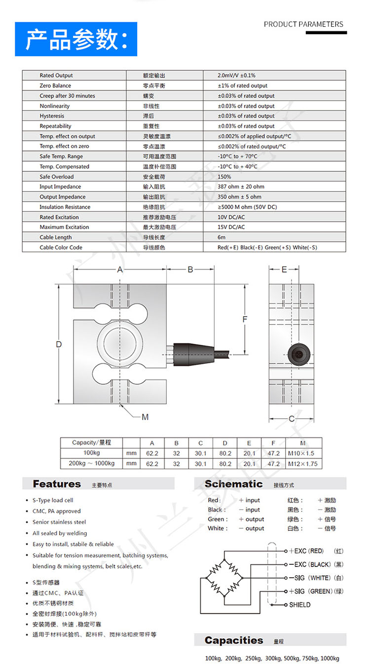 產(chǎn)品類型:S型稱重傳感器