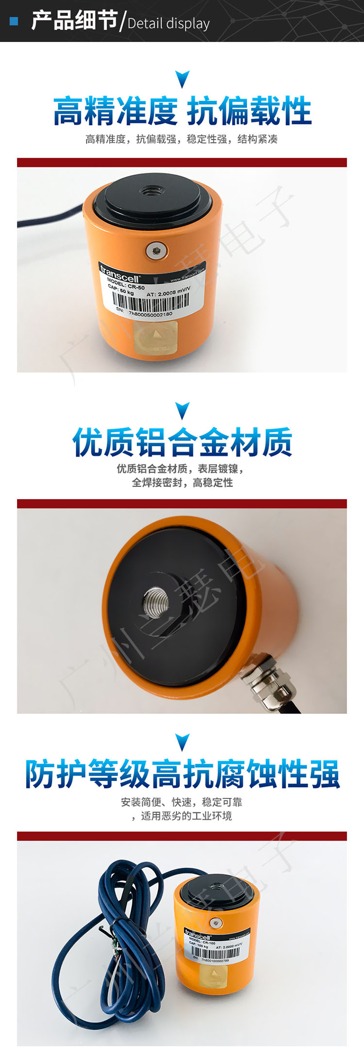 美國(guó)Transcell CR-50kg稱重傳感器產(chǎn)品實(shí)拍圖: