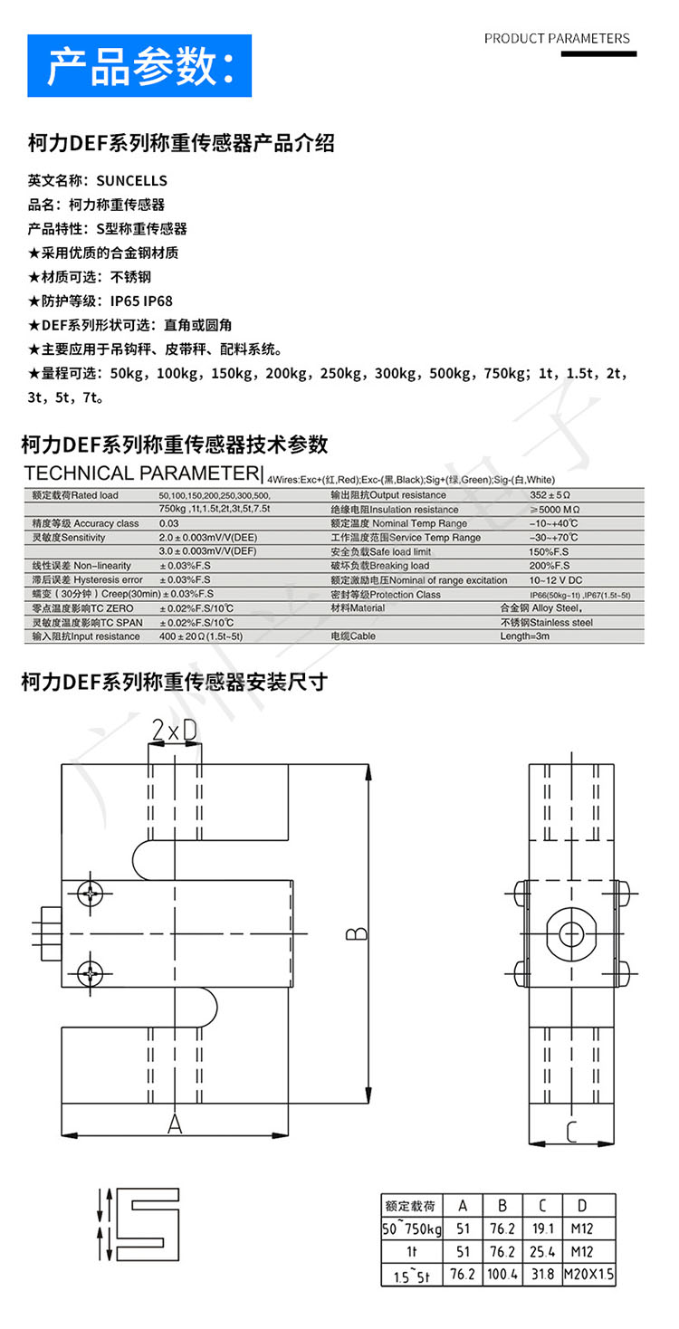 寧波柯力 DEF-A-500KG稱重傳感器產(chǎn)品參數(shù):