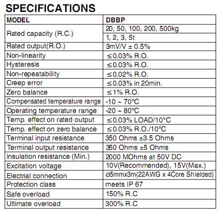 韓國Bongshin DBBP-1000kg稱重傳感器主要特性: