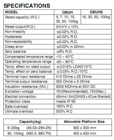 OBUH-5KG,OBUH-7KG,OBUH-10KG,OBUH-15KG稱重傳感器主要特性: