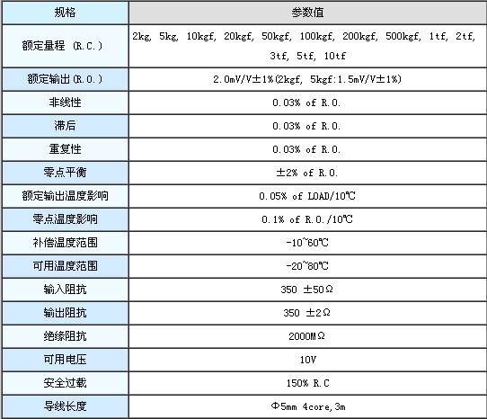 UU-2kgf,UU-5kgf,UU-10kgf,UU-20kgf傳感器技術(shù)參數(shù):