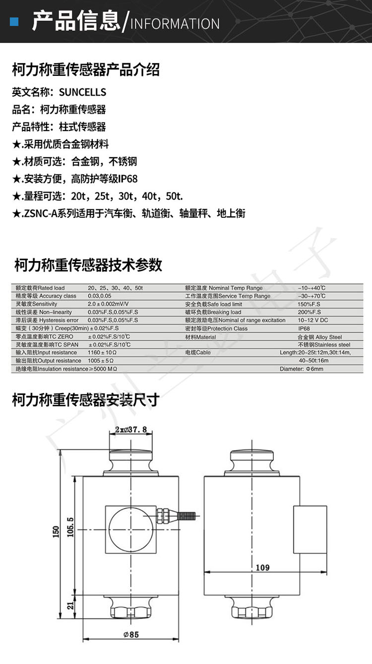 柯力ZSNC-A稱重傳感器特點應(yīng)用:注:ZSNC柱式傳感器,可選ZSNC-SS不銹鋼稱重傳感器、ZSNC-D數(shù)字稱重傳感器
