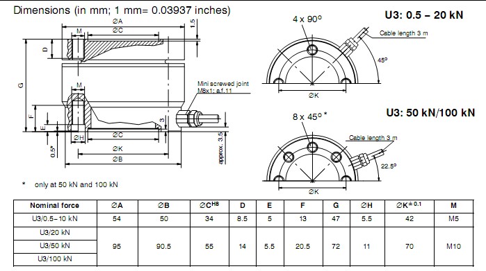 額定靈敏度: 2mV/VU3 - 環(huán)型對(duì)稱性,極高的穩(wěn)定性力傳感器